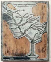 Placa para impressão (clichê), com ilustração em baixo-relevo (a zinco?), para uso em prelo manual na impressão do Livro "Árvore Genealógica da Família Ottoni", de autoria de Christiano Benedicto Ottoni Filho, com edição de 1963.